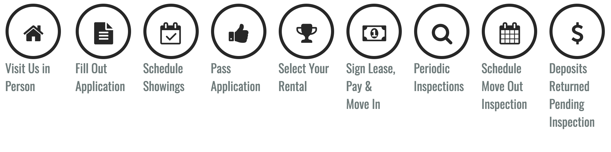 Rent is due in our office by 5pm on the first of every month. Please refer to your lease for all terms and late fees. You may bring your rental payment into the office during office hours, drop after-hours payments in our drop box at the front door of our office, mail payments, or make payments online. Allow extra time for mailed payment to arrive on time. Bounced checks incur a $35 fee in addition to any standard late fees already incurred by a late payment and will require all future payments to be made in certified funds (i.e. cashier’s checks, cash or money orders).
